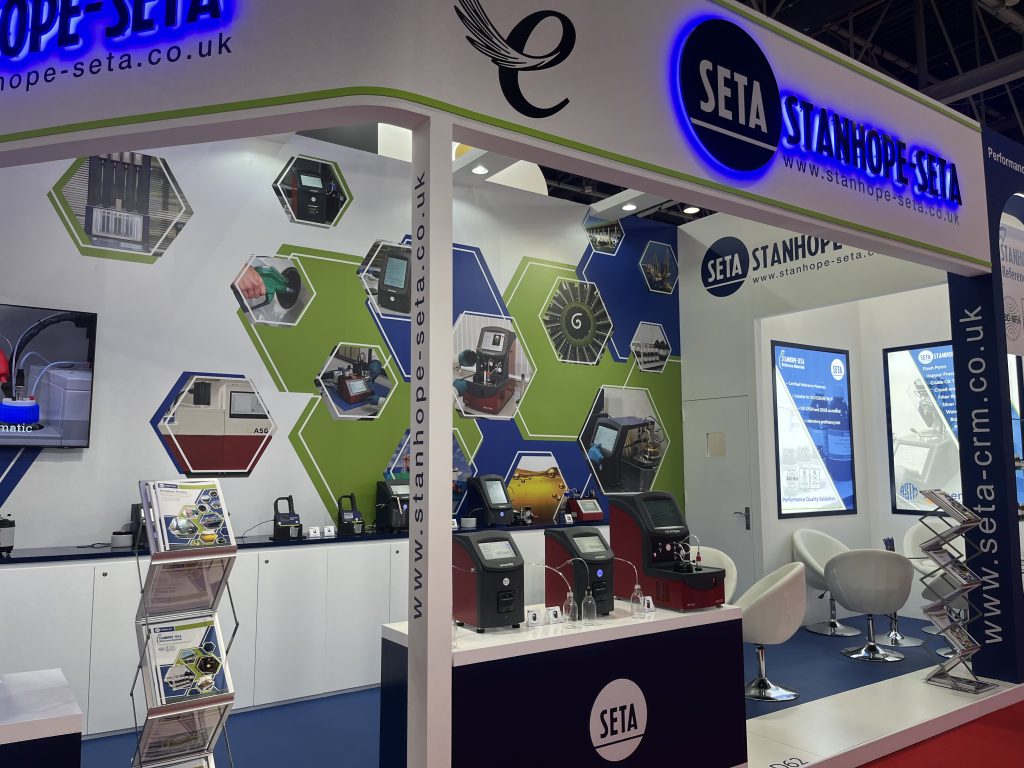 This year, we had a specially designed display cabinet, highlighting our growing range of reference materials, including our ISO 17034 accredited Certified Reference Materials, such as the SETA-CRM Pensky-Martens Flash Point and SETA-CRM Cleveland Flash Point, along with Seta’s range of Multi Test Verification Materials (MTMVs), Single Test Verification Materials (STVMs) and Proficiency Testing Scheme.